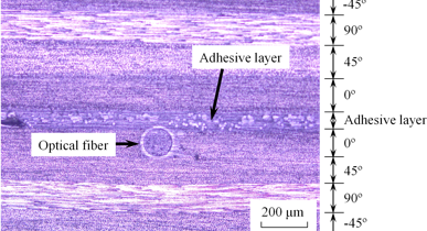 CFRP/CFRP接着継手に埋め込んだFBG光ファイバセンサー