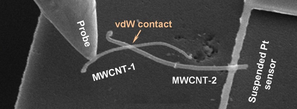 For example, using sensors designed and fabricated in our laboratory, we can measure the thermal conductivity of individual nanomaterials with characteristic sizes below 100 nm. We also evaluate interfacial heat transfer (thermal boundary resistance) between nanomaterials and substrates using Raman-based methods.